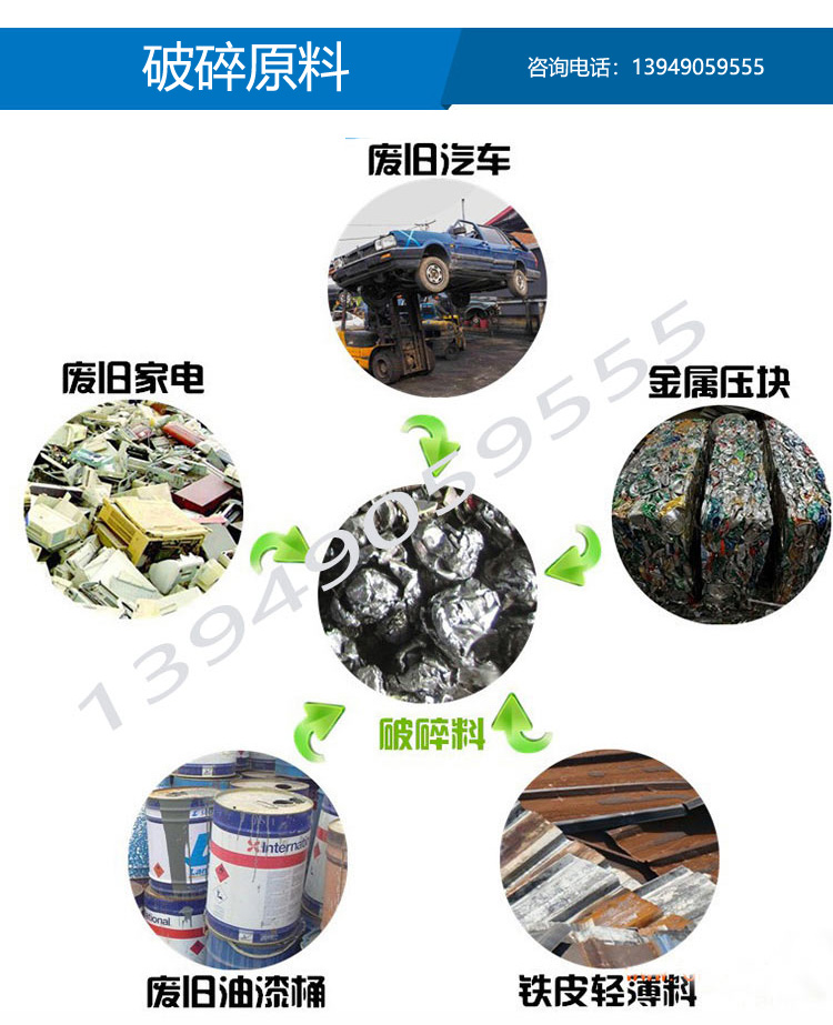 廢鋼破碎機,廢鋼破碎機生產線用于加工報廢汽車車體、馬口鐵類、舊家電、自行車、舊冰箱、彩鋼瓦、空罐等下等廢料使之成為上級的制鋼原料。通過廢鋼破碎機不斷粉碎,除去涂膜,提高體積比重,投電爐時防止爆炸,在一定的狀態下提升溶解率等,滿足鋼廠“精料入爐”的要求。源通機械廢鋼粉碎機噪音低、沒有污染、粉碎效率高,出料細碎,顆粒均勻,廢鋼粉碎機價格實惠,根據型號不同,廢鋼粉碎機價格在市場上也不同,但是我們源通牌的廢鋼粉碎機價格實惠,歡迎全國各地的親朋好友到我廠進行實地考察,我們的廢鋼粉碎機生產線不會讓您失望的。